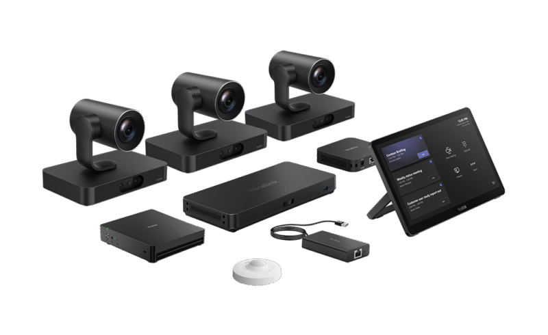 AVHub, audio and video processor | Interfaces 2 x USB-A port 1 x USB-B port 1 x codec port 7 x Yealink VCH port (RJ-45) 1 x RCA in/out interface 1 x 6.3mm line in interface 1 x 6.3mm line out interface 1 x power interface Function features: Dividable and merging meeting rooms are supported Support intelligent multi-speaker tracking |